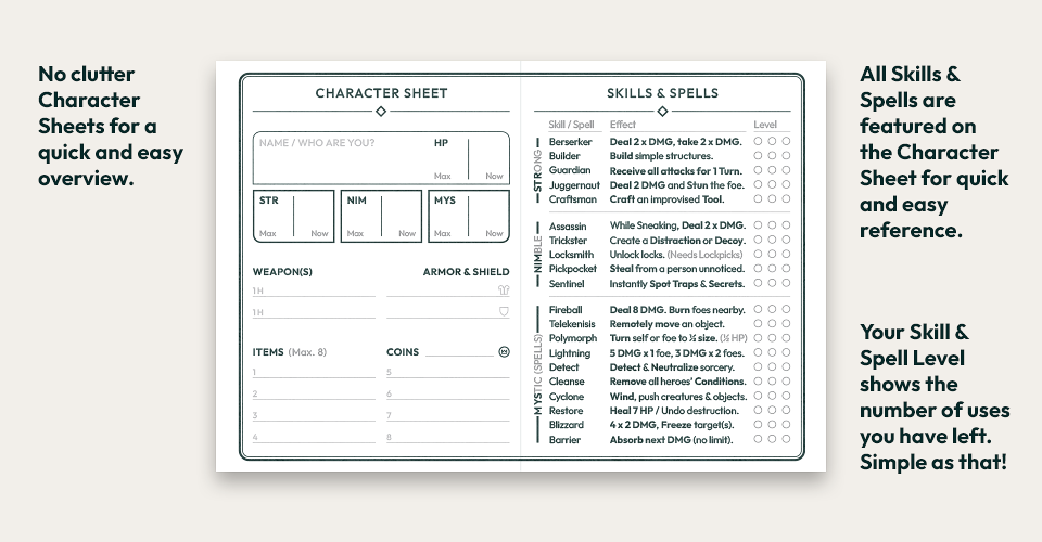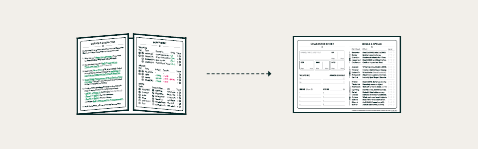 Also, it was a conscious design choice to open up to a double spread with everything you need for character creation.
